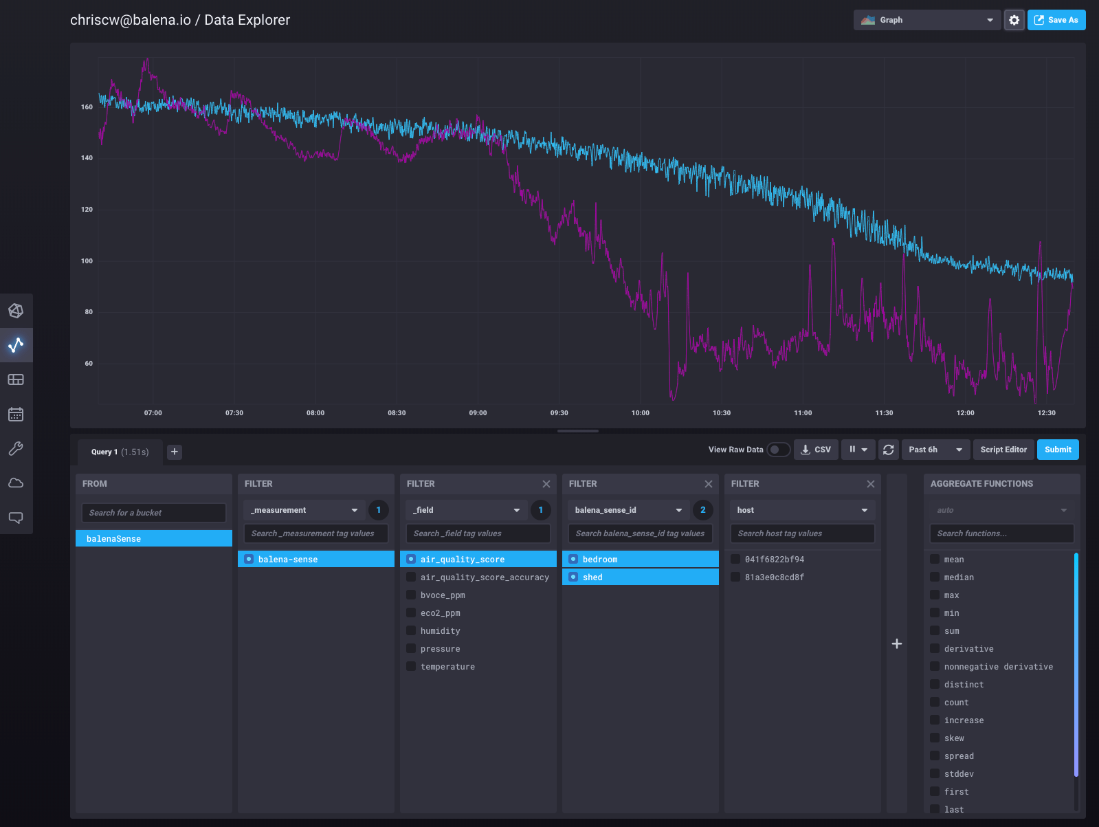 Chronograf built in, the standalone version of InfluxDB does not include any software for data visualisation. If you've used balenaSense in the standalone form, you'll remember that it uses