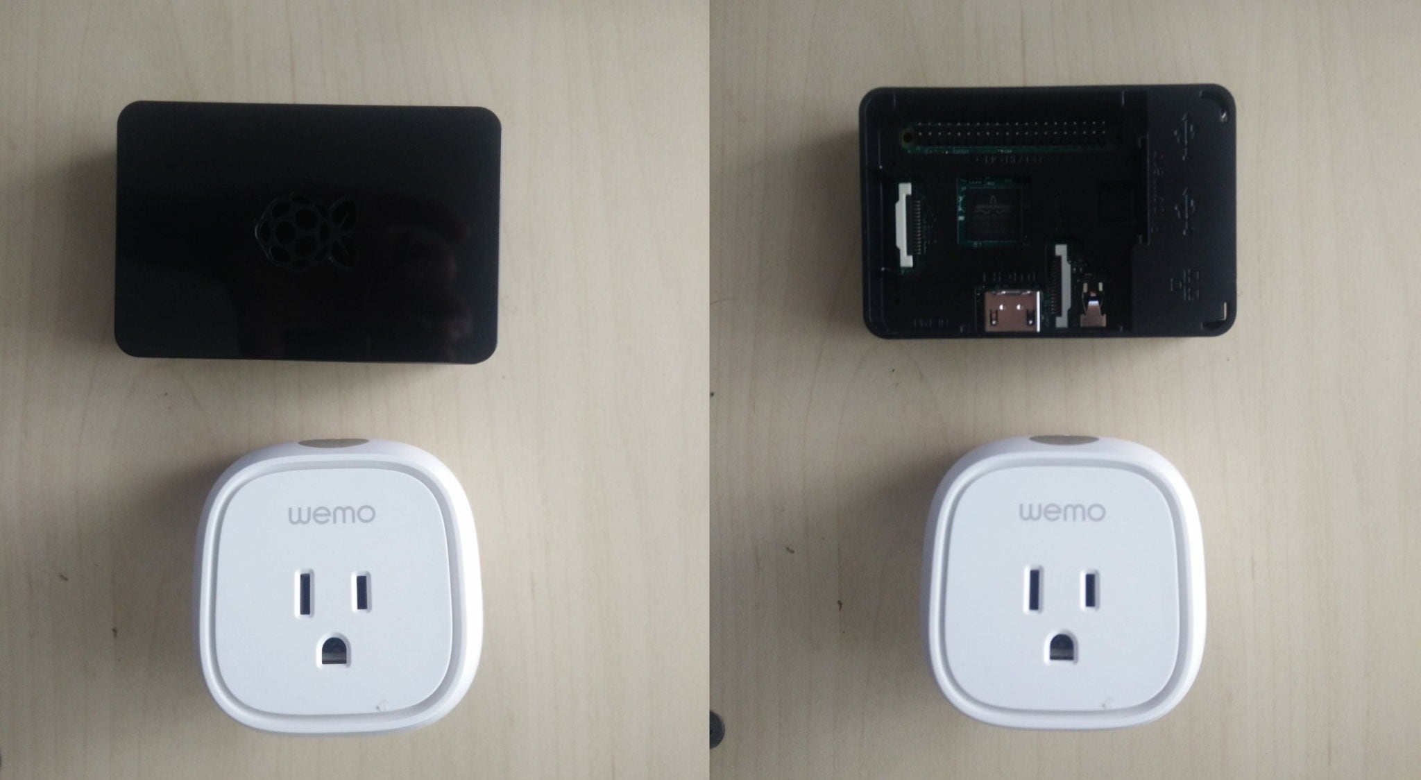 The whole setup can be very small and inconspicuous, the Raspberry Pi, above, is barely larger than the smart switch itself.