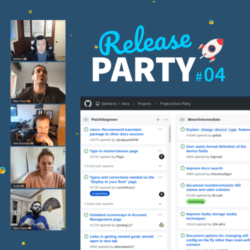 This month we are introducing you to the first group of balena Ambassadors. We also held a Release Party that focused on getting the team together to improve our balenaCloud docs.
