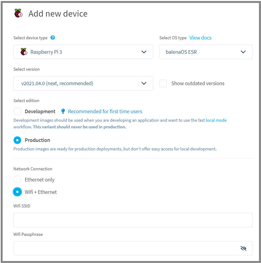 Note: we've used a Raspberry Pi 3 in the image below but be sure to select the correct device type for the device you are using!