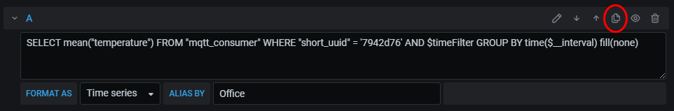 SELECT mean("temperature") FROM "mqtt_consumer" WHERE "short_uuid" = '0000000' AND $timeFilter GROUP BY time($__interval) fill(none)