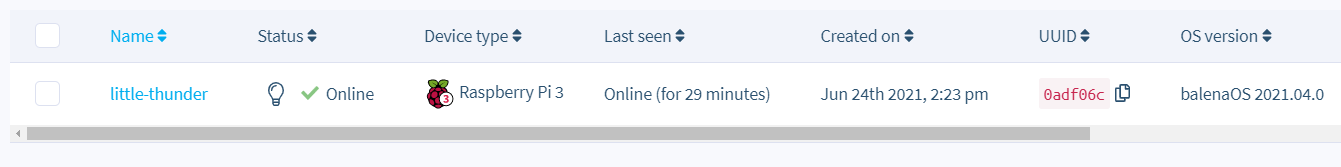 When the device boots for the first time, it connects to the balenaCloud dashboard, after which you’ll be able to see it listed as online and move onto the next step.