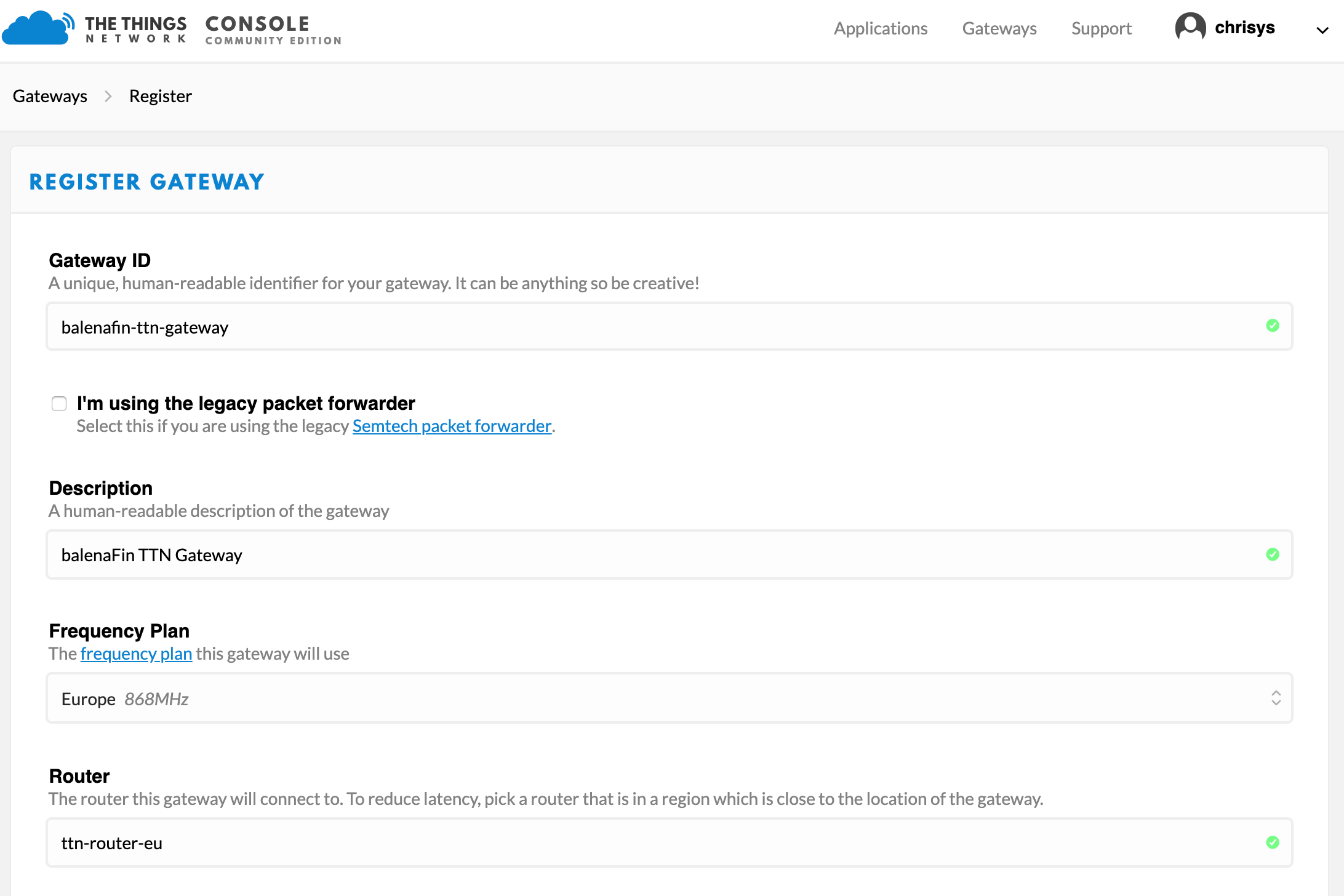 With your hardware provisioned and the code deployed, the next step is to set up the gateway within the TTN console.