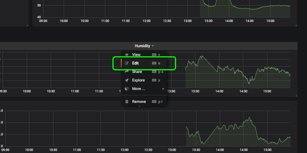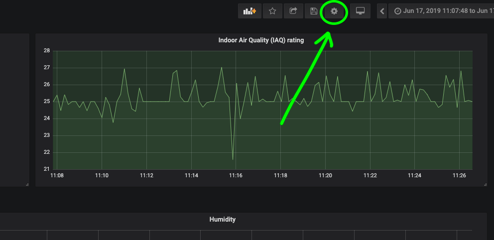 You can customize each panel on Grafana after you’ve logged in by hovering over the title and going to edit. I recommend having a play with the options - the changes to your dashboard are not saved automatically so if you make a mistake you can reload the page and everything will revert to how it was. If you make some changes you want to keep, hit save at the top of the dashboard (ensuring that you are editing your copy) and all of your settings will be saved to your device.