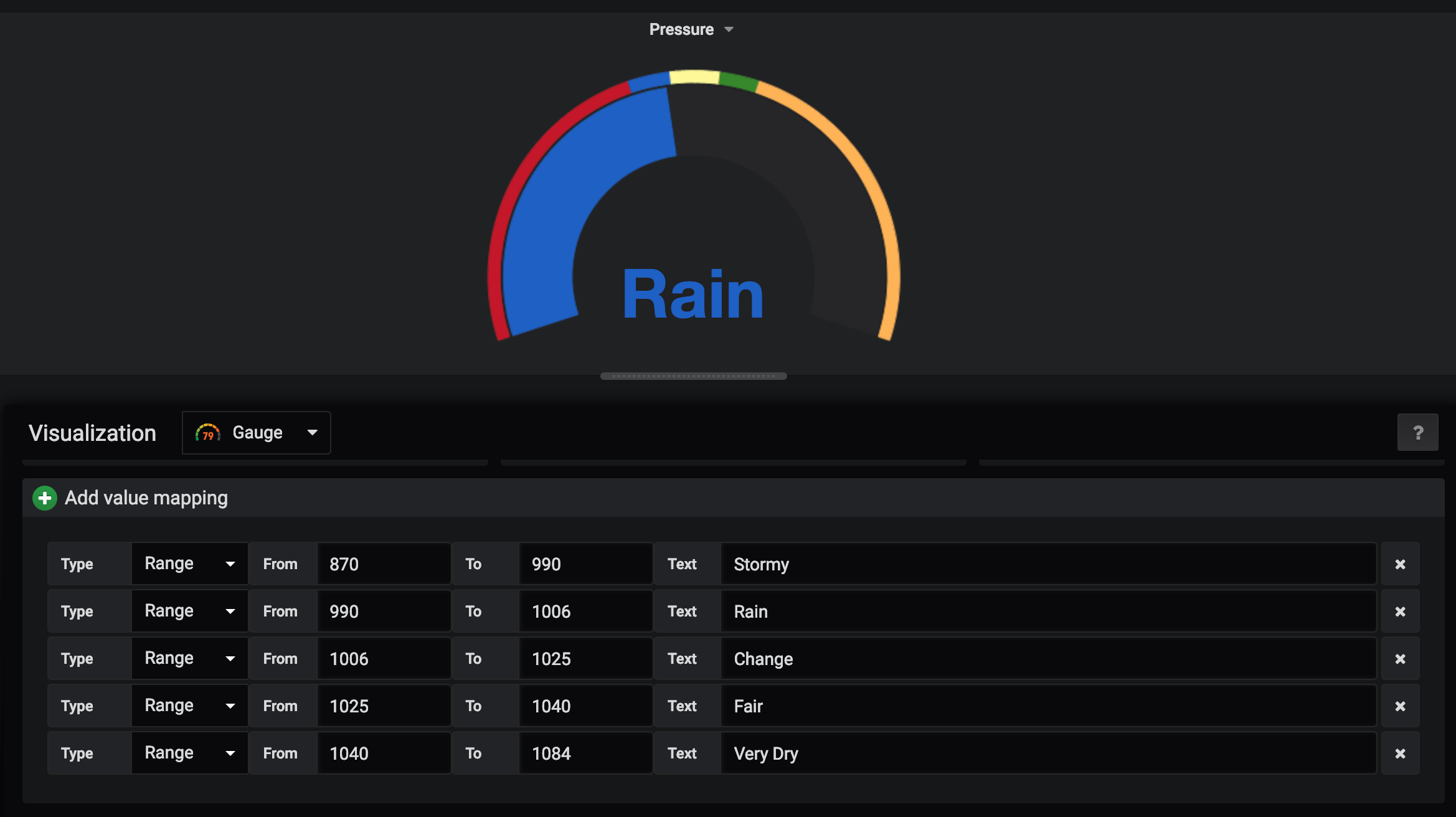 You can customize the gauges too; for example on the pressure gauge, we’ve set up some basic bands and text values to replace the numbers. You’re free to edit all these to whatever works for you!