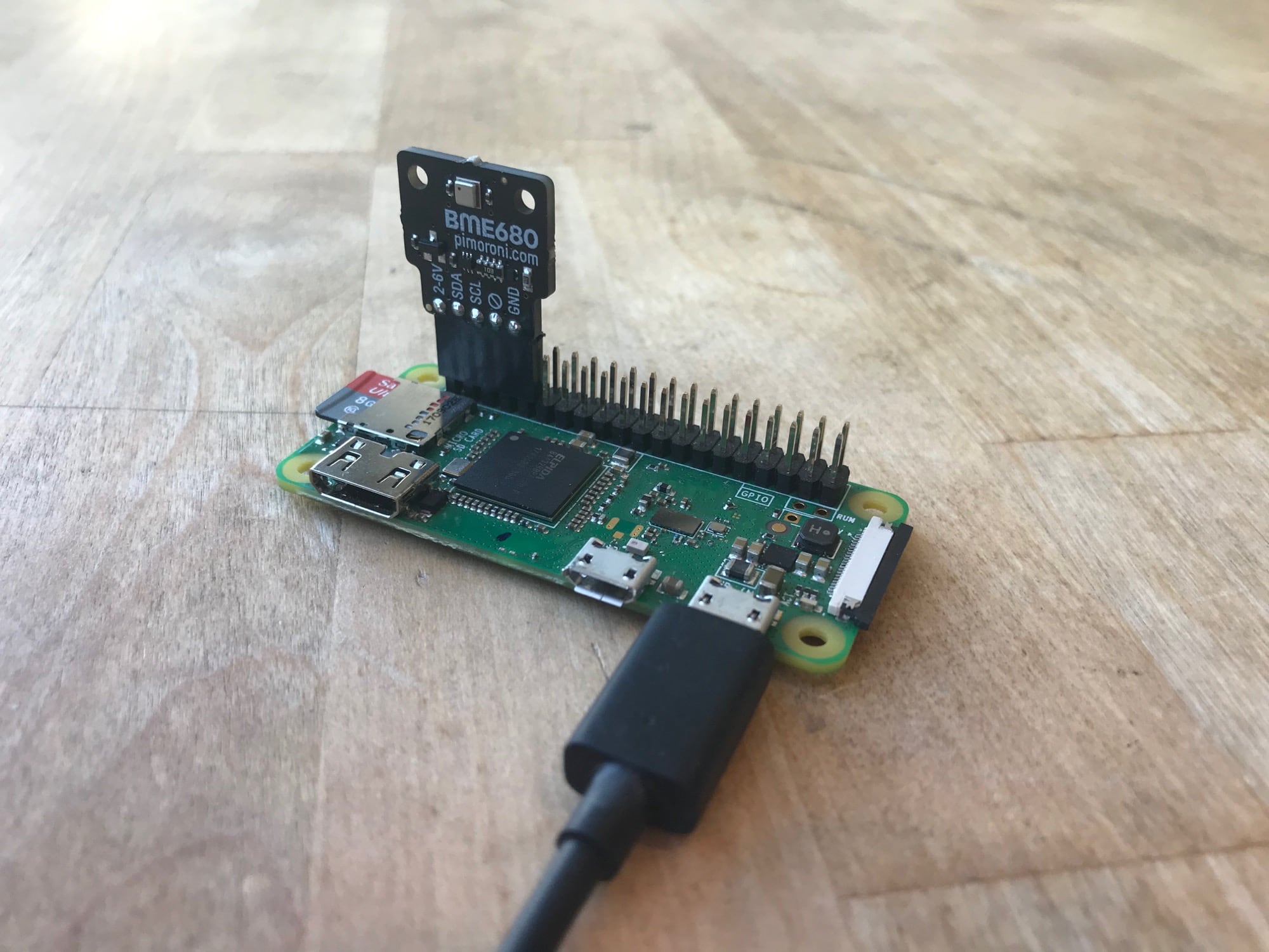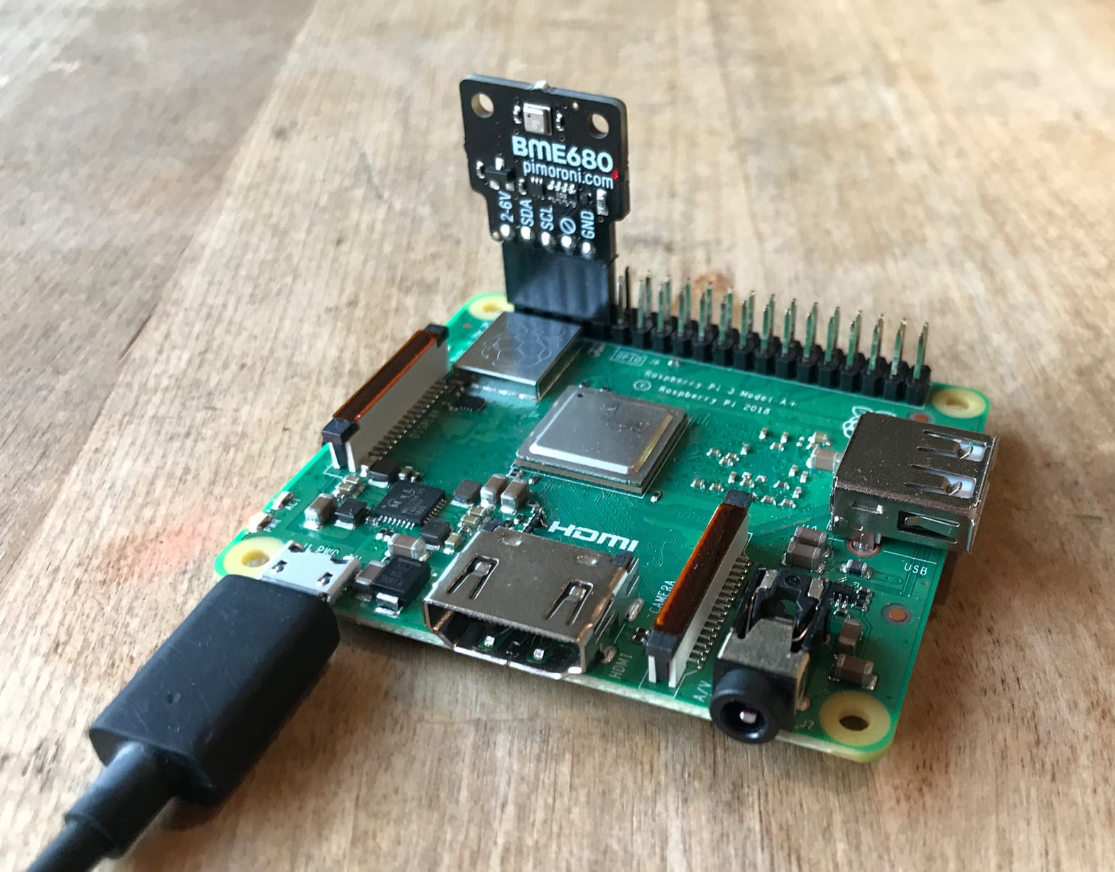 Note: the Sense HAT doesn't include a gas sensor and the readings are quite inaccurate as they are heavily affected by their proximity to the Raspberry Pi CPU. If you are starting from scratch don't buy a Sense HAT for this project;