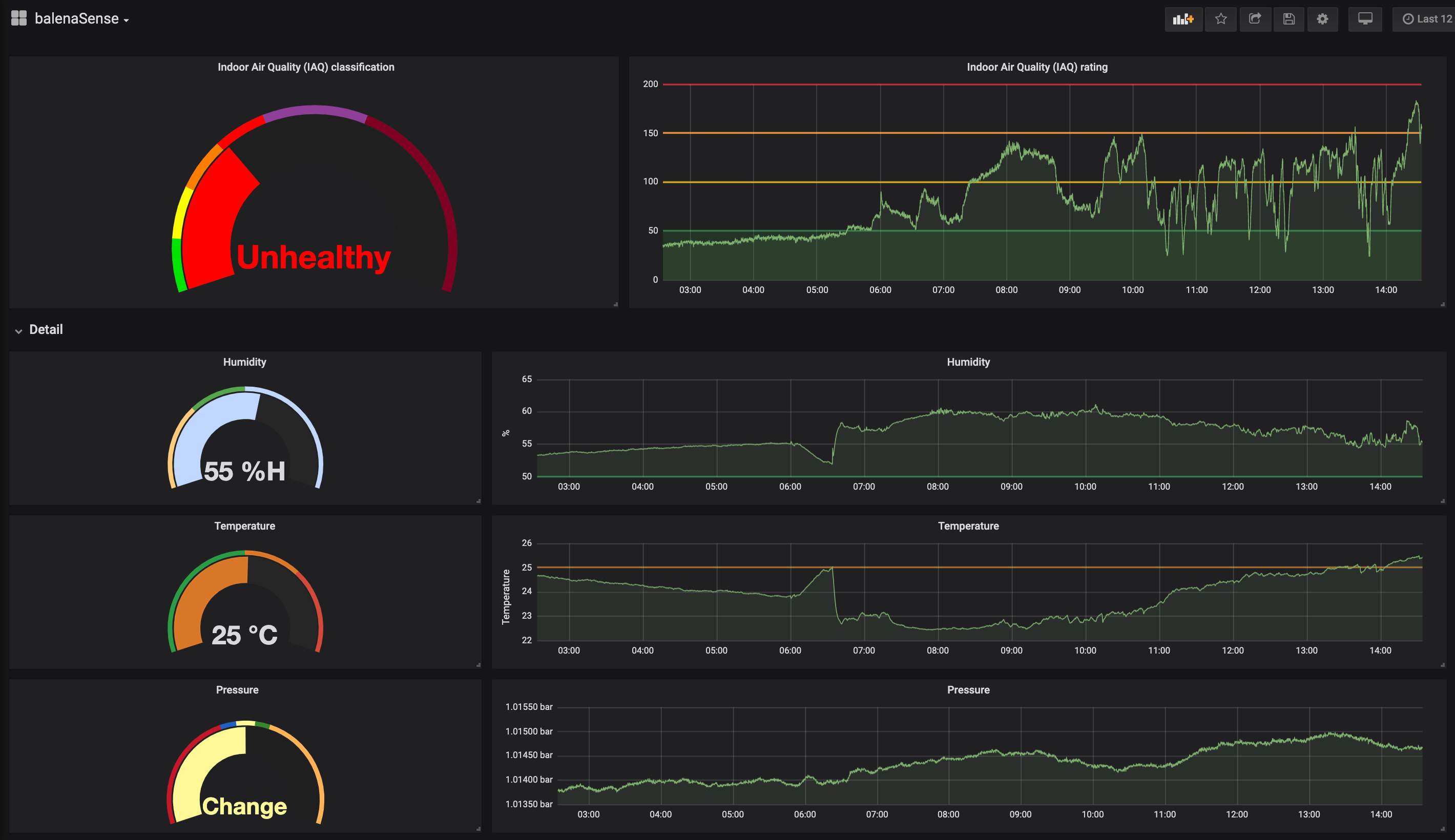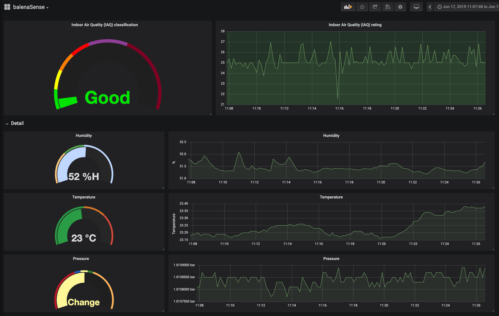 balenaSense, will get you up and running with a setup to take readings of temperature, humidity, barometric pressure, and air quality, and provide a dashboard that you can access from anywhere to see the stats at a glance and monitor trends.