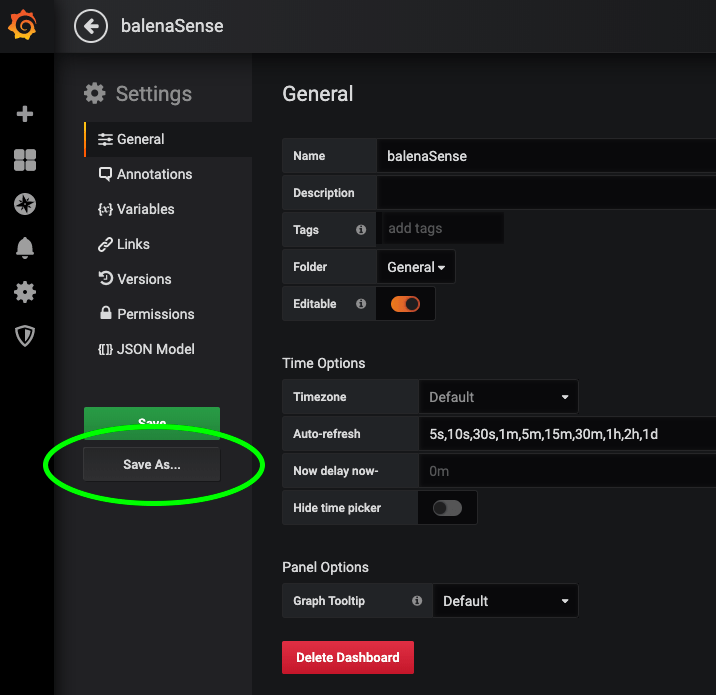 Note: due to the way Grafana is provisioned, you can't save changes to the default dashboard. First, save a copy of it and you can then make all your changes.