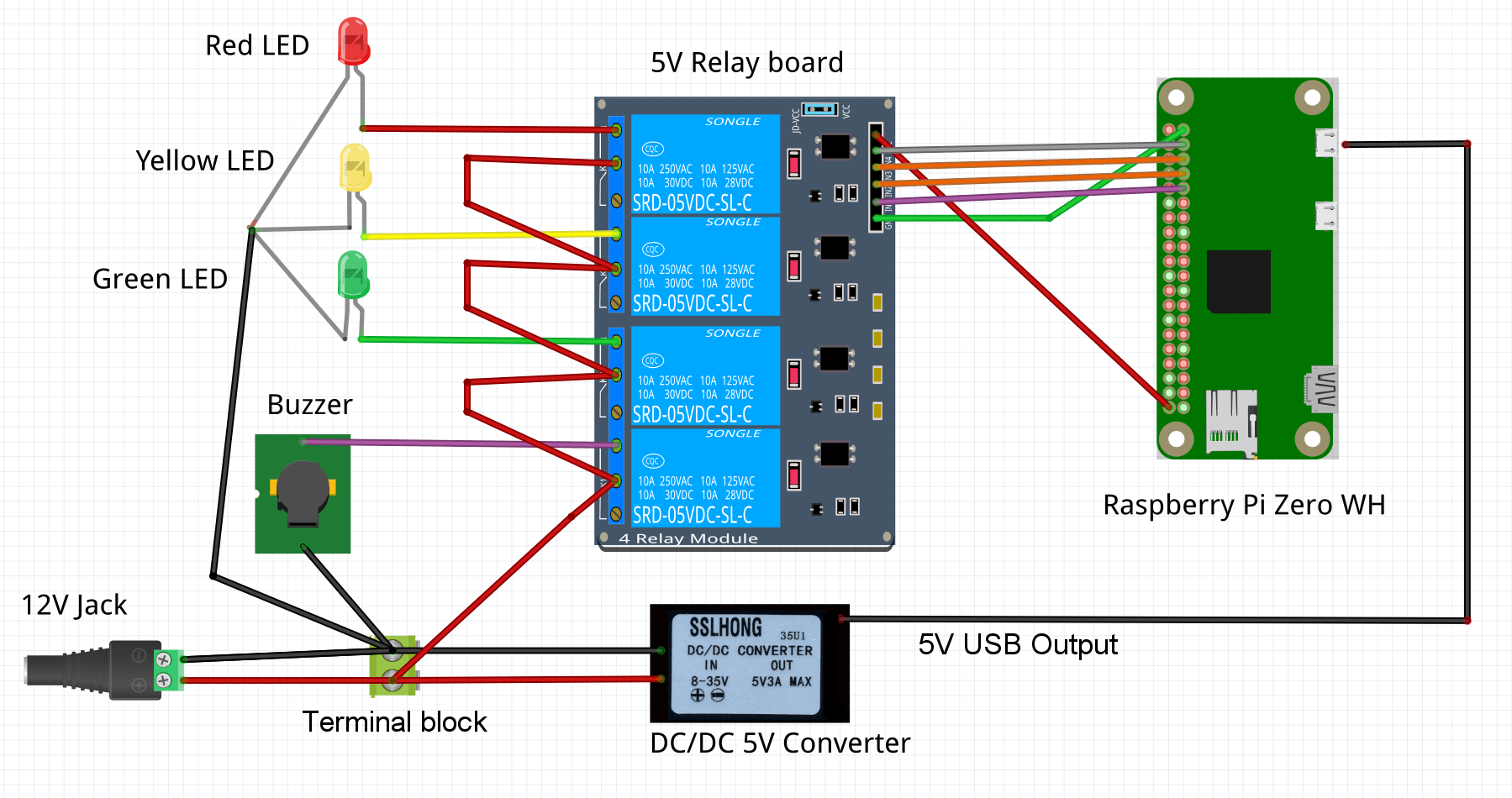 One of the first lessons often provided to those learning about the Raspberry Pi is how to blink an LED by programming the device’s GPIO pins. We’re going to take this simple idea, multiply it by three different colored LEDs (and an optional buzzer) and use an attractive web interface to control everything.