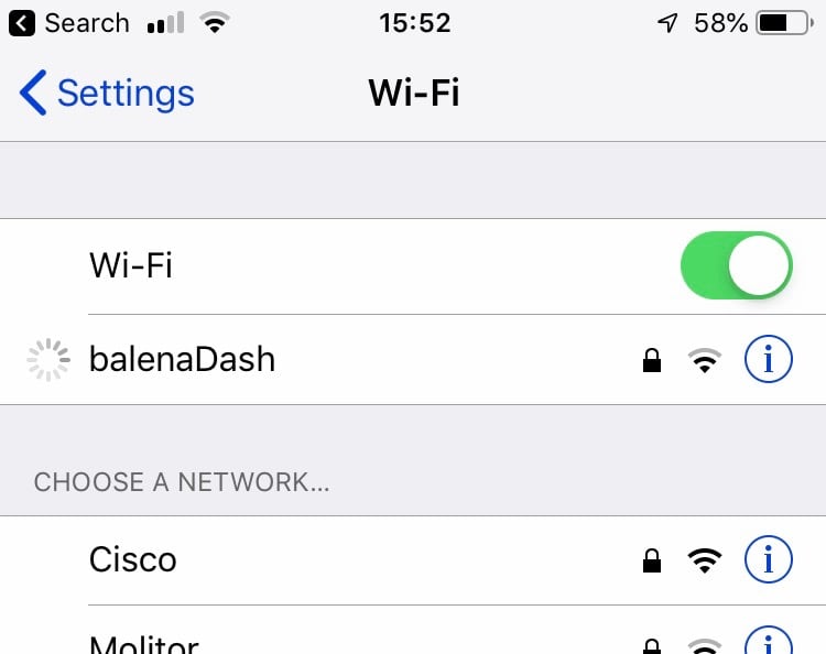 Note: the balenaDash network will only exist if the device does not have an active/functional connection to the internet!