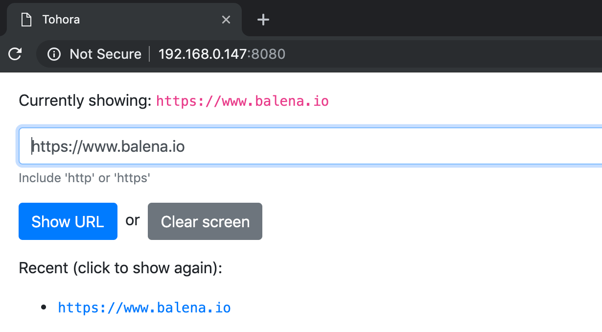 Now that your display has been updated with the latest version of the code, you’ll be able to access the Tohora web interface on port 8080.