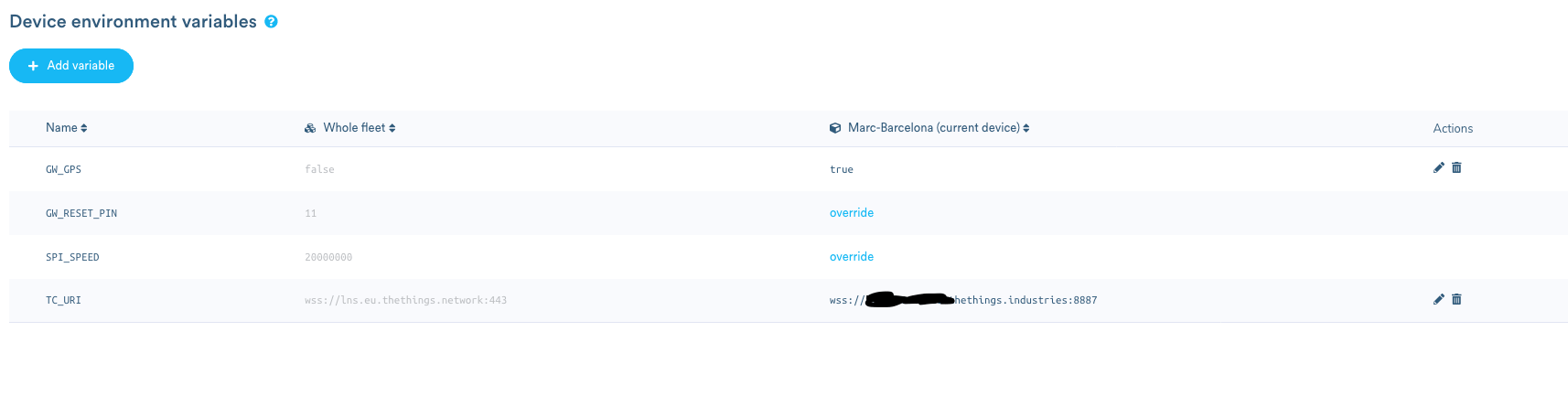 Once the gateway is registered go to the balenaCloud and change the Device Variables to point to the TTI network and not to the TTN network.