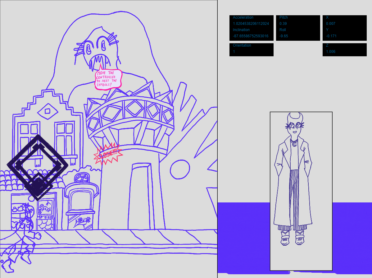 I would like to add more puzzles and make the gameplay be about 5-10 minutes long. I want to find ways to make the physical aspects of the controller fit into the gameplay, as well. I would like to keep including physical markings on the controller which mirror symbols in the game. I’d like to use these to create puzzles where the player has to find the right engraving on the controller in order to continue further.