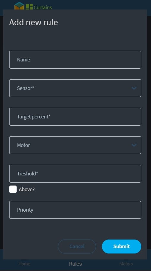 When you have motors, then you can create rules for them on the rules tab. If there are sensors you can select a sensor for the rule or you can create cron based schedules.
