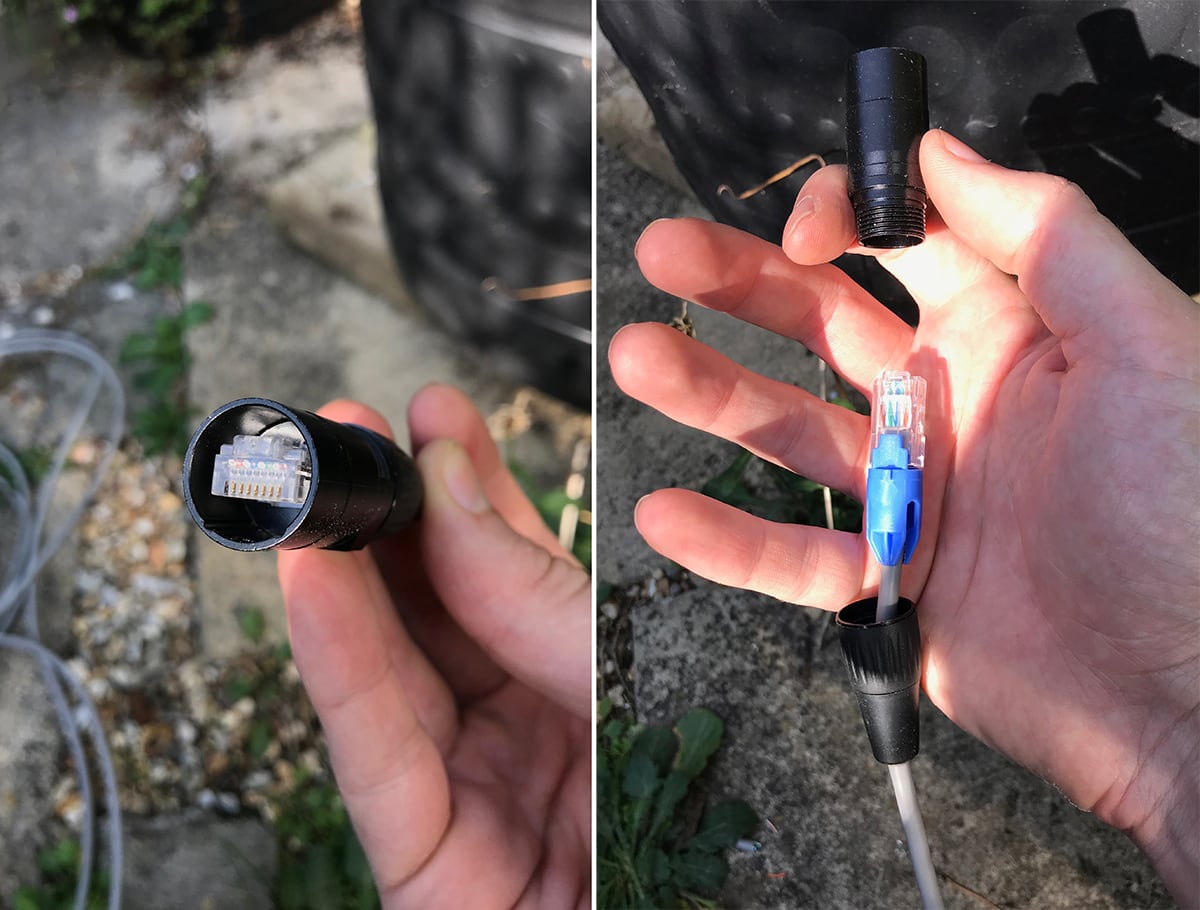 For my installation I also found some neat weatherproof RJ45 (Ethernet)