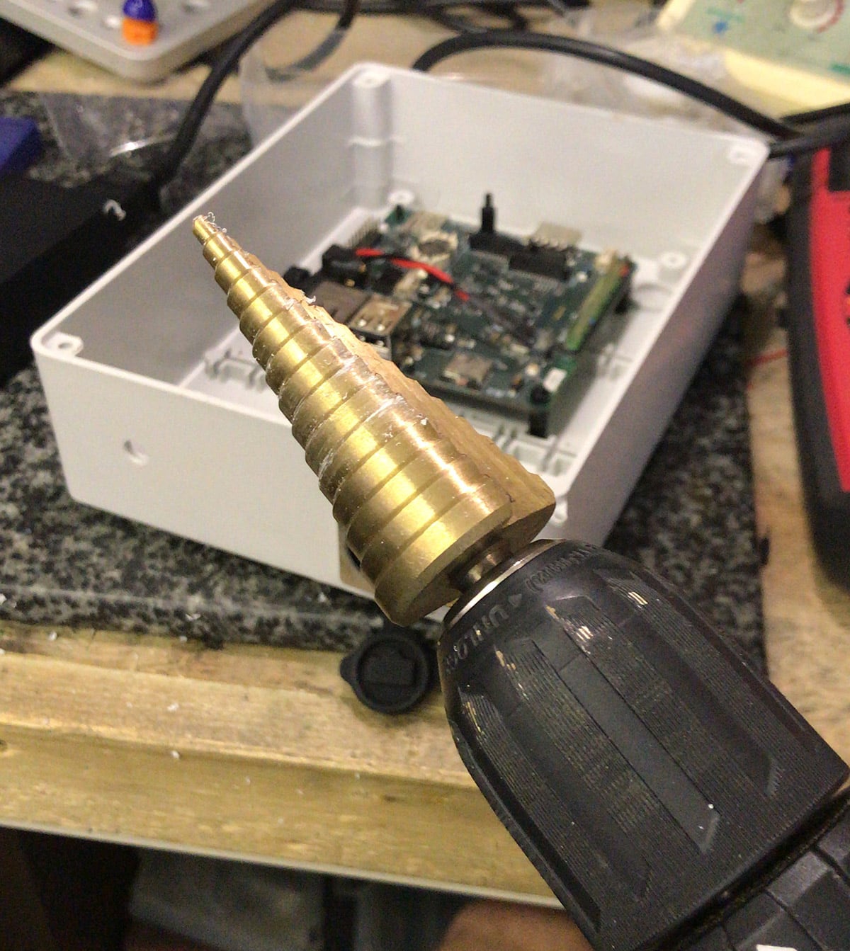 Now time for the fun stuff! Let’s take the enclosure and make some holes for the cables, and then mount the hardware inside.