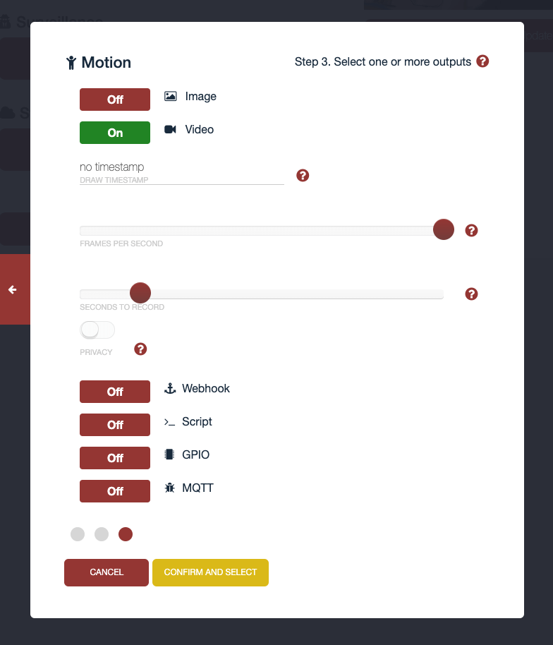 A cool feature we like is the ability to use motion detection to trigger things like Webhooks (to integrate with external services like IFTTT), publish to MQTT topics, or even trigger GPIO pins on your device to control external electronics.