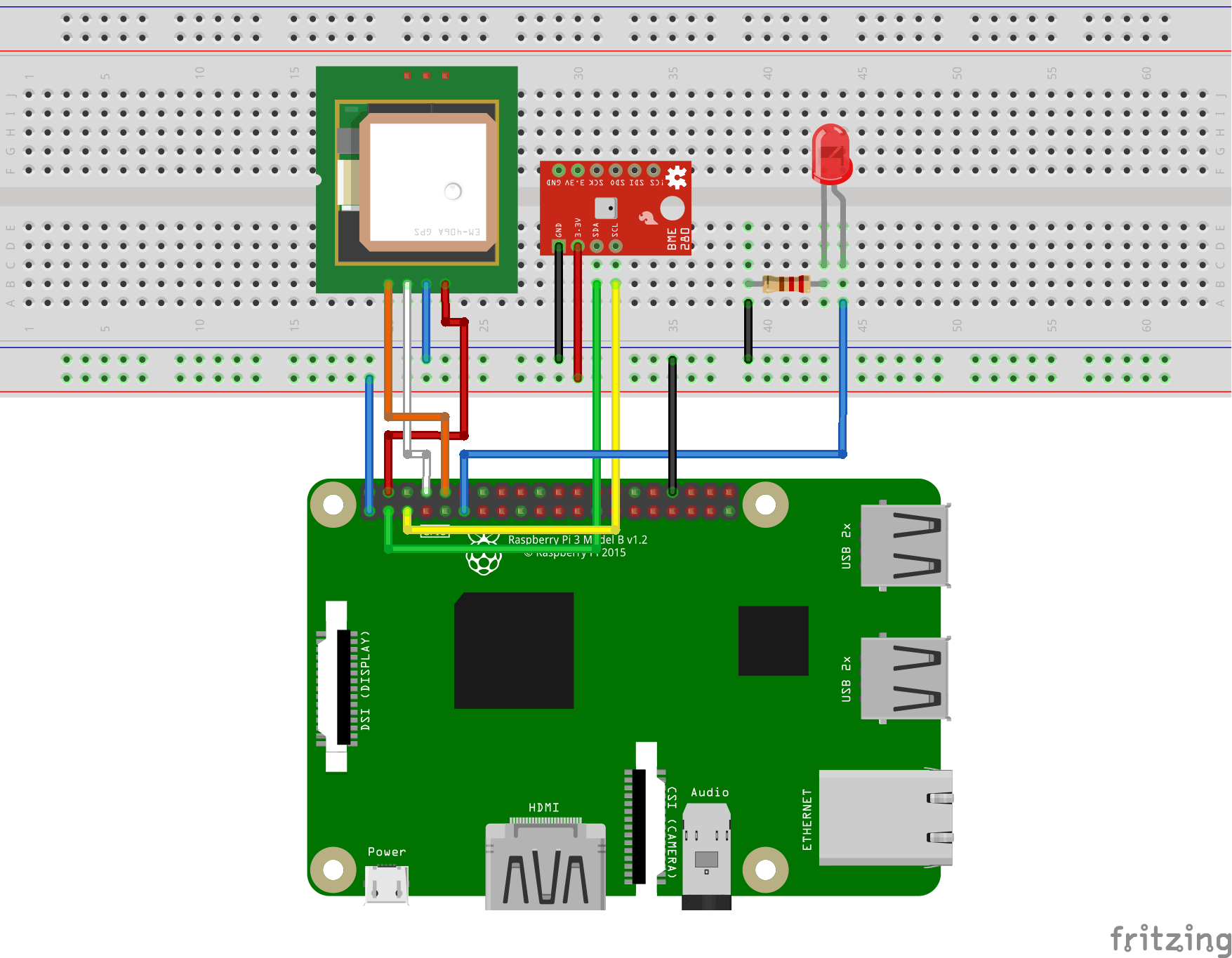 A simplified version of the schematics is shown in the image above. Since carrying around a prototyping breadboard was not easy during our tests, we have also designed and manufactured a small Raspberry Pi HAT that is