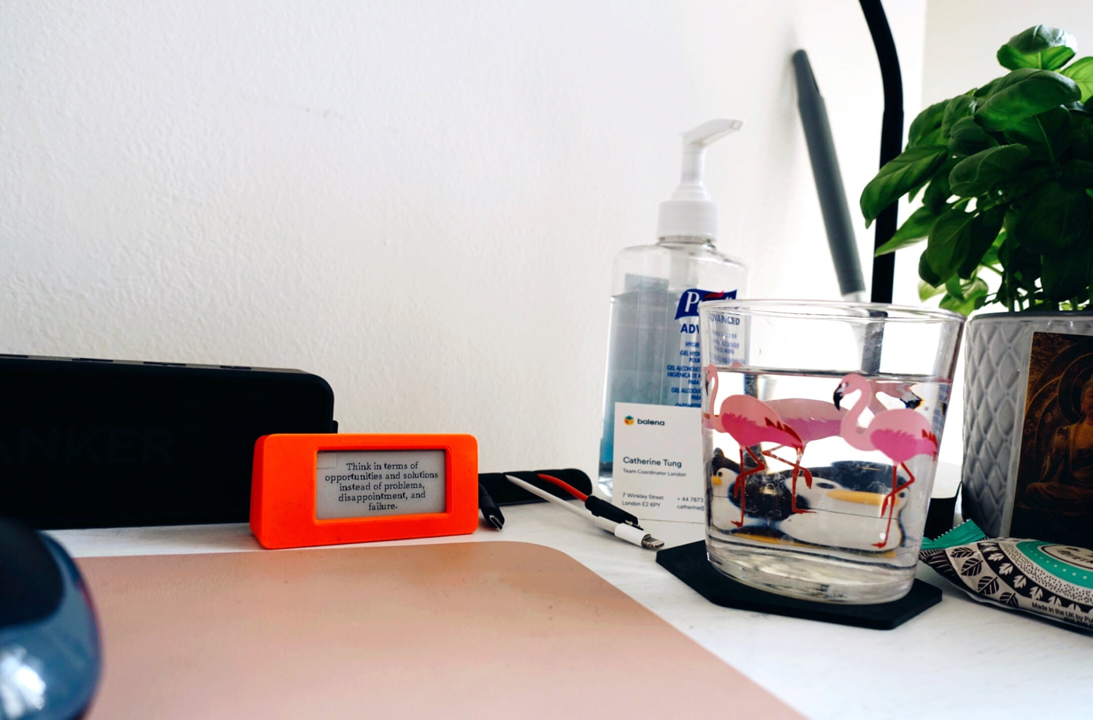 When I first saw the e-ink displays for Raspberry Pi Zero, I fell in love with it, and came up with the initial idea of this project: I wanted to send personal, encouraging messages to my sister that were more intimate than a text message, and faster than our handwritten letters. I mentioned the idea to our Hardware Hacker, Chris, who also wanted to build one for his partner living in another country. Together, we built Inkyshot: an e-ink message display that can pull an inspirational quote of the day, or send messages of your choosing.