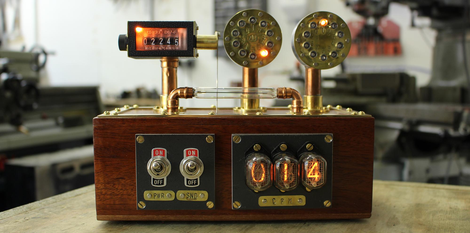 I was always a fan of the steampunk style, and having also had experience building steam engines in the past, there was only one real direction this project could go. Once I had my radiation detector kit hooked up to my Raspberry Pi running InfluxDB and Grafana, I found myself woodworking, machining, and fabricobbling an enclosure out of mahogany, brass, copper, toggle switches and, because it…