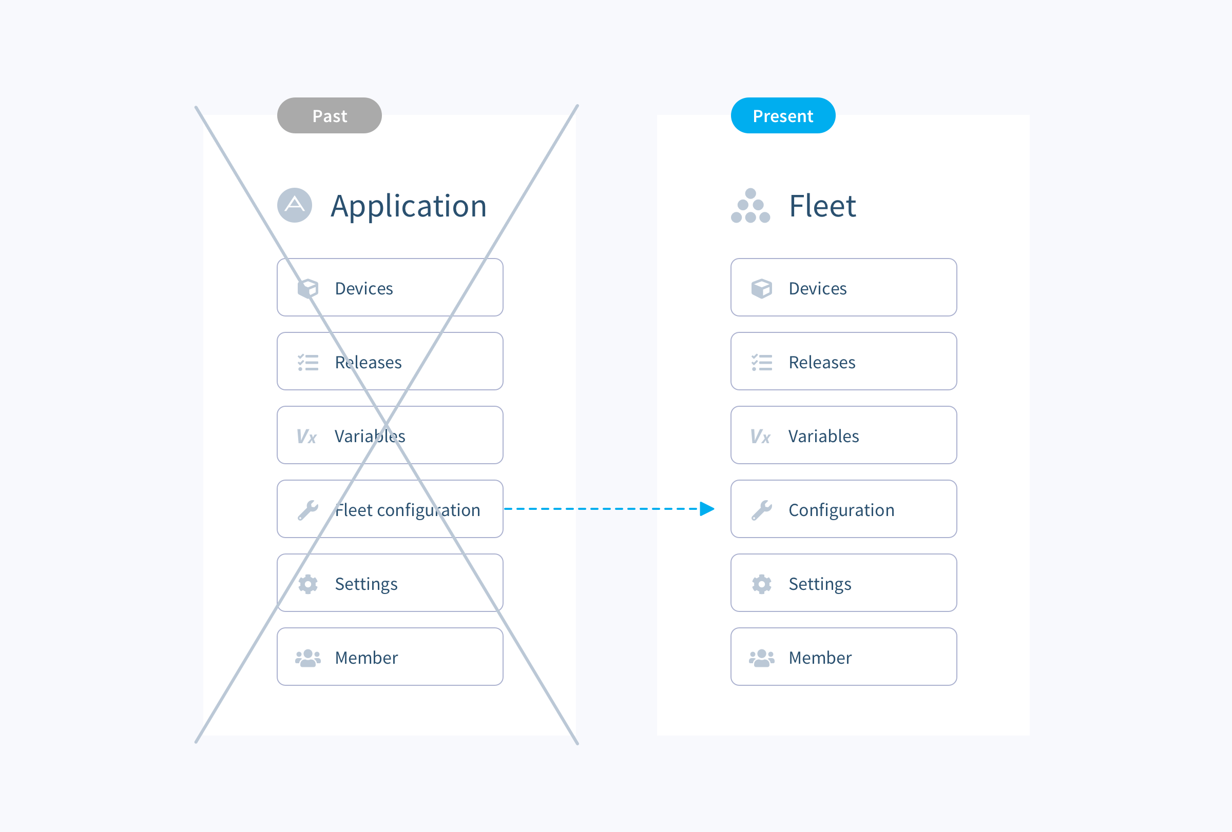 Applications on balenaCloud are now Fleets. We’ve changed this to progress us towards our long-term vision of disentangling devices from software, allowing you to manage both independently and solve for use cases of ever-increasing complexity.