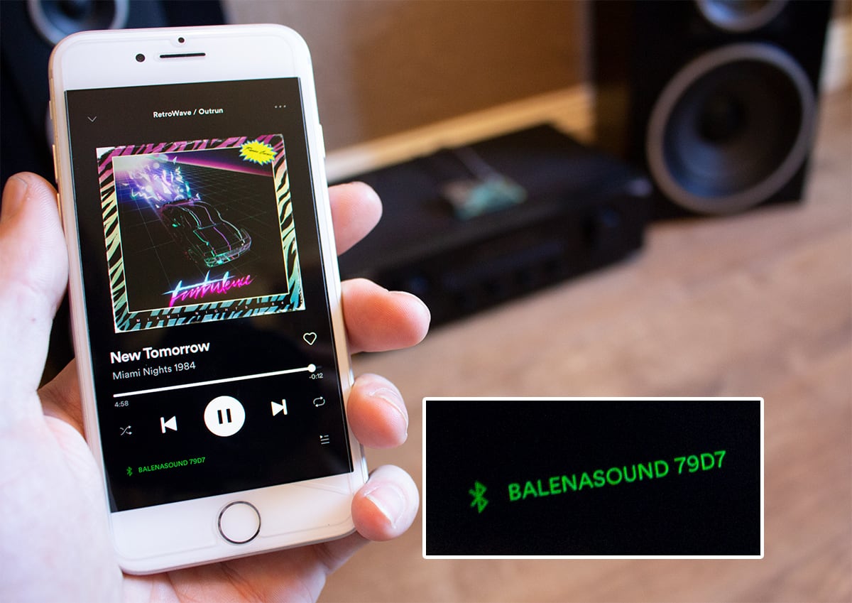 BalenaSound presents itself to your device as a Bluetooth audio receiver, so that once pairing is complete you can now send any audio output from your device to your old speakers!